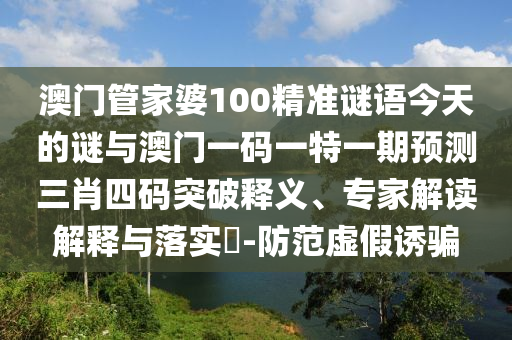 澳门管家婆100精准谜语今天的谜与澳门一码一特一期预测三肖四码:突破释义、专家解读解释与落实