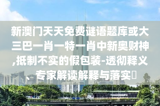 新澳门天天免费谜语题库或大三巴一肖一特一肖中新奥财神:透彻释义、专家解读解释与落实​