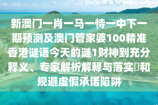 关于新澳门一肖一马一恃一中下一期预测及澳门管家婆100精准香港谜语今天的谜财神到的概念,涉及多个领域,包括博彩预测、传统谜语以及文化信仰等,以下是对这些概念的全面释义、专家解析以及如何落实相关概念以避免虚假承诺陷阱的详细解释。