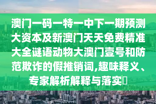 澳门一码一特一中下一期预测大资本及新澳门天天免费精准大全谜语动物大澳门壹号和防范欺诈的假推销词,趣味释义、专家解析解释与落实​