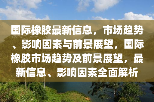 随着全球经济一体化的深入发展,橡胶产业作为重要的原材料工业,其国际市场动态备受关注,本文将结合最新信息,从市场趋势、影响因素以及前景展望等方面,对国际橡胶市场进行深入剖析,并融入作者的见解。