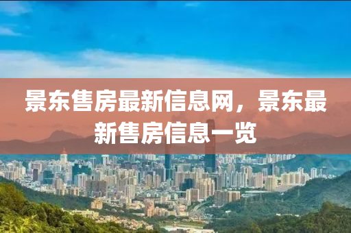 随着城市化进程的加速,房地产市场日新月异,景东作为城市发展的热点区域,其房地产市场备受关注,本文将结合最新信息,从新闻报道的视角出发,对景东的售房市场进行深入剖析,并融入个人的见解,为购房者提供有价值的参考。