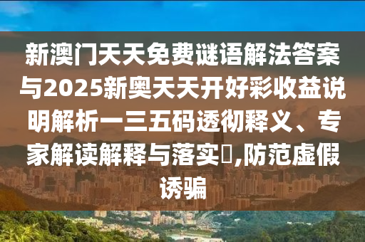 新澳门天天免费谜语解法答案与2025新奥天天开好彩收益说明解析一三五码透彻释义、专家解读解释与落实”的解析与防范虚假诱骗的警示