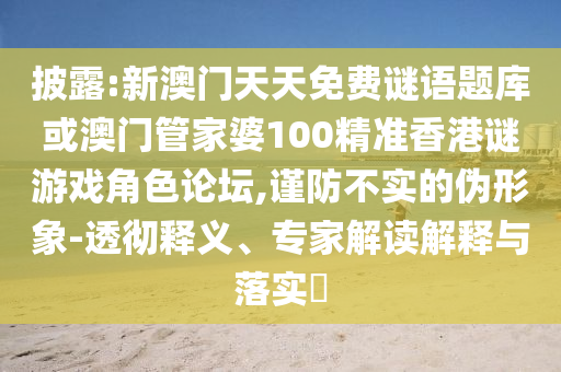 新澳门天天免费谜语题库或澳门管家婆100精准香港谜游戏角色论坛”的透彻释义、专家解读与落实,以及谨防不实伪形象的警示